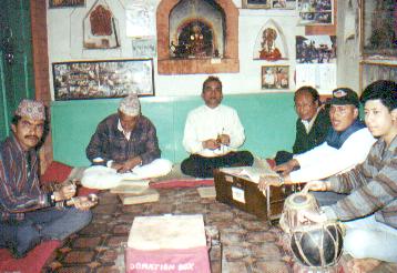 カトマンズの一角で夜になると民族音楽を演奏する市民